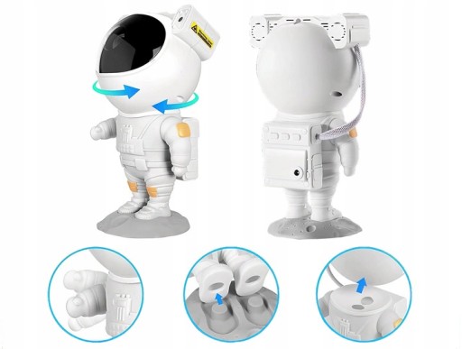 Projektor jest wykonany w kształcie sympatycznego astronauty, który zachwyca swoim urokiem i dodaje niepowtarzalnego charakteru każdemu pomieszczeniu.