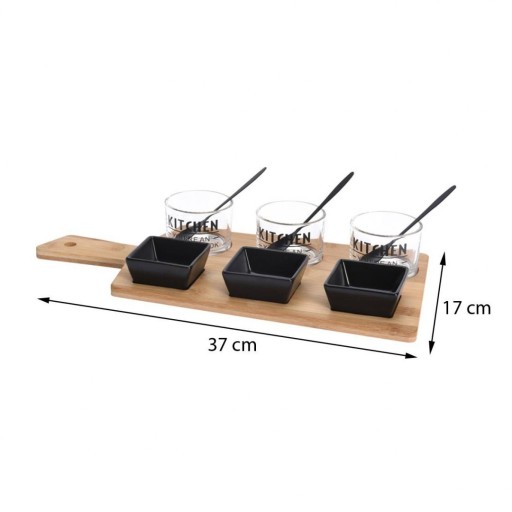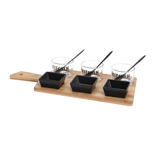 ⭐Zestaw 6 szt miseczek na bambusowej desce w komplecie z 3 łyżeczkami.