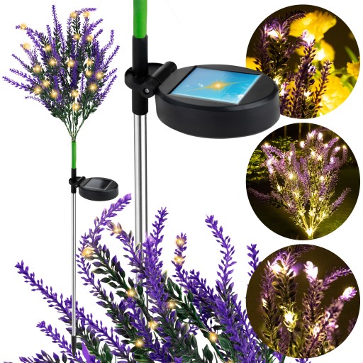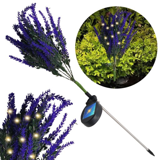 Lampa Solarna Ogrodowa Oświetlenie Dekoracyjne Wbijana Kwiat Lawenda