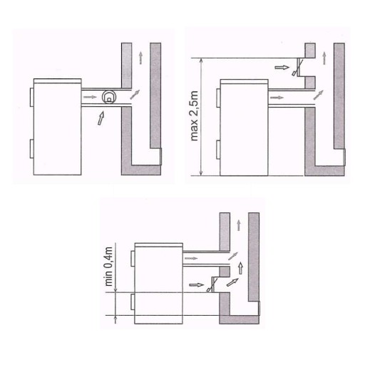 - zwiększenie oporów przepływu – przewód kominowy oprócz spalin dodatkowo musi przetransportować powietrze.