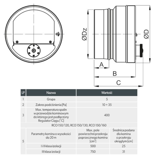 Регулятор тяги дымохода с коэффициентом редукции RCO-80/100