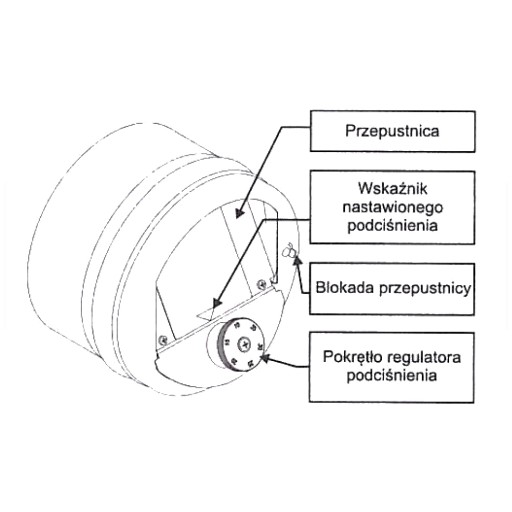 Zmiana nastawionego na Regulatorze Ciągu podciśnienia odbywa się przez zmianę wyważenia przepustnicy, której dokonuje się za pomocą pokrętła.