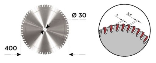 - Tarcza do drewna 400 x 3,8 (3) x 30 mm / Z 60