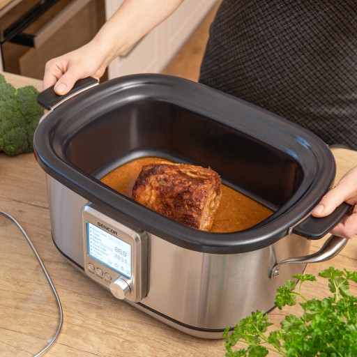 Wolnowar Sencor SPR 7200 SS to urządzenie oszczędzające czas i energię. Powolne gotowanie na parze pozwala przygotować wiele pysznych potraw z mniejszą ilością tłuszczu. Wolne gotowanie pozwala zachować smak, aromat i wartości odżywcze potraw. Wolnowar idealnie nada sie do przyrządzenia zup czy gulaszu oraz zapewni soczyste mięso. Urządzenie posiada panel LED ułatwiający obsługę wolnowaru nawet mokrymi rękoma. Kuchenny gadżet nadaje się do mycia w zmywarce oraz przechowywania w lodówce. Nasz sprzęt posiada funkcję utrzymywania temperatury, dzięki której jedzenie pozostaje ciepłe przez długi czas.