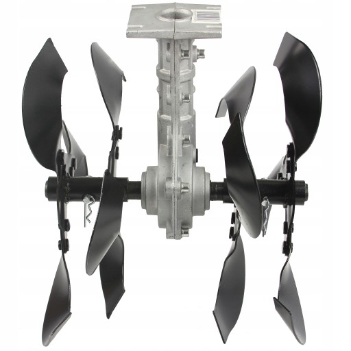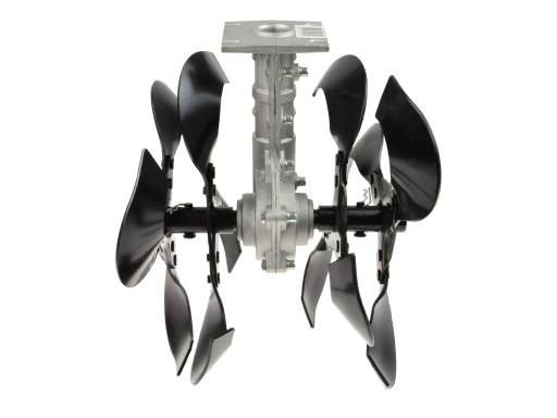 - Przystawka na podkaszarkę spalinową umożliwia spulchnianie i napowietrzanie gleby w celu przygotowania podłoża pod uprawę roślin.