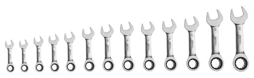 ⭐ Seria krótkich kluczy płasko-oczkowych z grzechotkami w najpopularniejszych rozmiarach