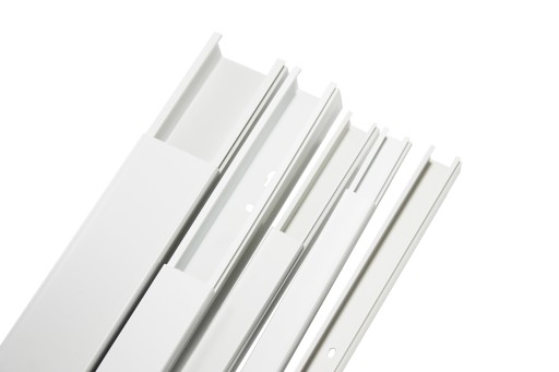 - przyspieszony montaż dzięki otworom, przez co można wcześniej przygotować uchwyty montażowe w odpowiednich odległościach, a korytko tylko na nie nałożyć i dokręcić,