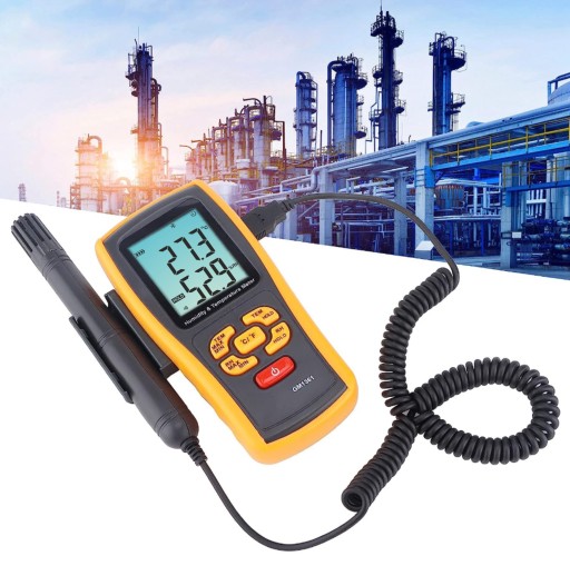 Precyzyjne urządzenie do pomiaru wilgotności i temperatury z funkcją pomiaru temperatury termoparą i temperatury otoczenia sondą. Termohigrometr wyposażony jest w funkcje pomiaru temperatury punktu rosy i temperatury tzw. mokrego termometru.