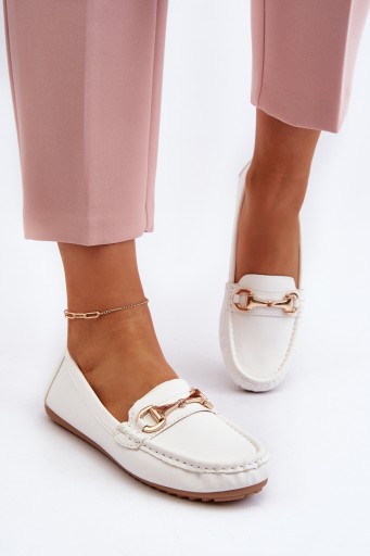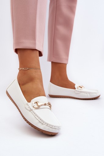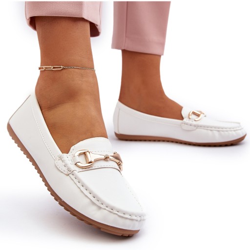 Damskie Klasyczne Mokasyny Eko Skórzane Białe Demese - rozmiar 38