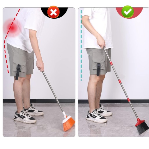 W pełni regulowany uchwyt pozwala dostosować wysokość miotły do swoich potrzeb, aby zapewnić wygodne sprzątanie.