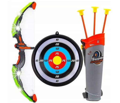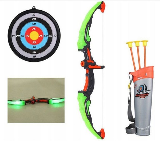 ZESTAW ŚWIECĄCY Łuk tarcza strzały + kołczan