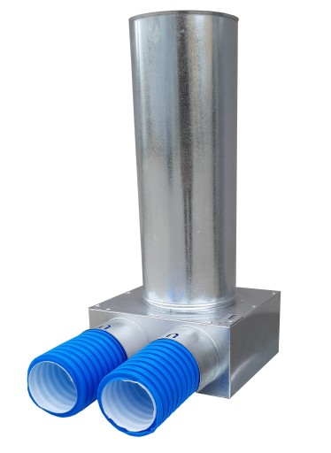 Służy do rozprowadzenia powietrza w danym pomieszczeniu. Powietrze doprowadzane jest do niej przewodami antybakteryjnymi (fi 75mm/ 60mm) a następnie poprzez zamontowanie anemostatu na jej wyjściu (fi 125 / 100mm) rozprowadzane jest w danym pokoju. Skrzynka dzięki specjalnej kierownicy, płynnie przejmuje powietrze dostarczone przewodami a następnie kieruje je w stronę anemostatu. Takie rozwiązanie w dużym stopniu zmniejsza straty powstające w przepływie powietrza.