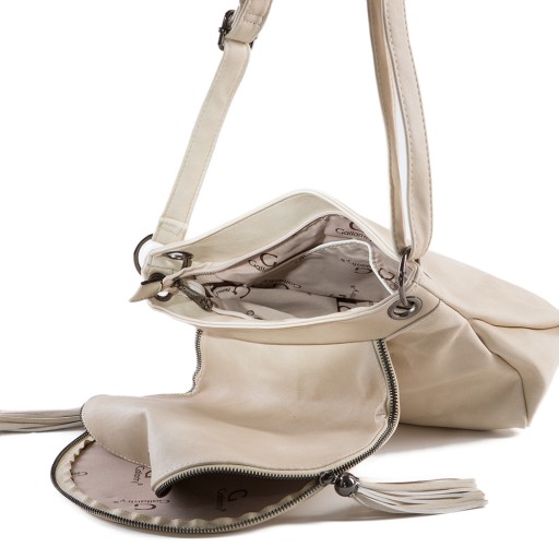 Gallantry Paris - BEŻOWA JASNA modna pojemna torebka listonoszka BOHO