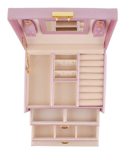 - POJEMNY – dzięki 20 różnym przegródkom i wgłębieniom, kuferek pomoże perfekcyjnie zapanować nad porządkiem w kolekcji biżuterii.
