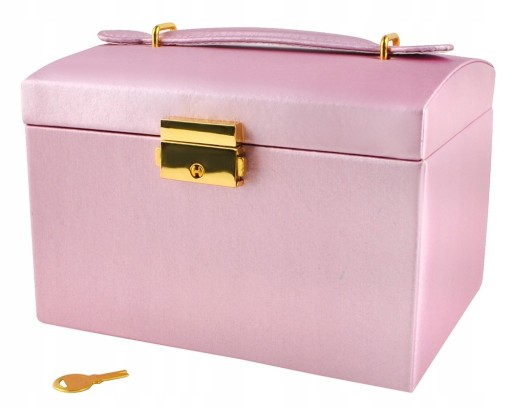 - ZAMYKANY NA KLUCZ – dzięki dołączonemu kluczowi zyskujemy pewność, że nikt oprócz nas nie korzysta z kuferka, nie ogląda i nie pożycza biżuterii; to dodatkowa ochrona wartościowych przedmiotów.