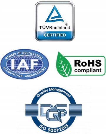 • Kontrola produktu i zakładu produkcyjnego przez TÜV Rheinland