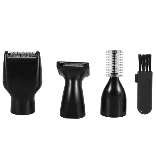 2. Trymer 4 w 1 wyposażony w głowicę trymera do włosów w nosie, głowicę trymera do zauszników, głowicę trymera do brwi, a także głowicę do przycinania włosów zapewnia pełną i czystą pielęgnację