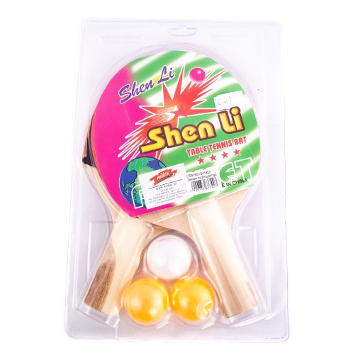 Paletka wykonana z gładkiego drewna. Uchwyty bardzo dobrze leżą w dłoni gwarantując komfortowe użytkowanie. Powierzchnia paletek pokryta jest materiałem gwarantującym doskonałe odbijanie się piłeczek. Jedna strona paletki jest koloru czerwonego, a druga czarnego.