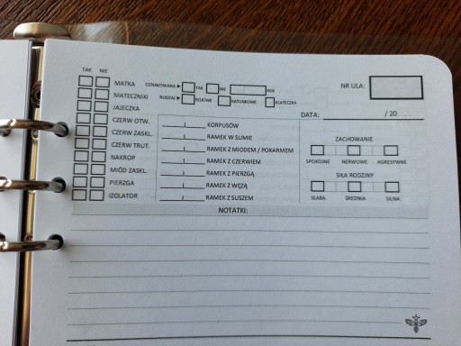 Dzięki otwieranemu tak jak segregator Notesowi pasiecznemu można z łatwością dodawać, usuwać lub przekładać karty ulowe.