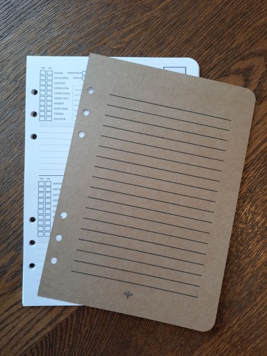 - dwie wykonane ze sztywnej, brązowej tektury karty przekładkowe A5