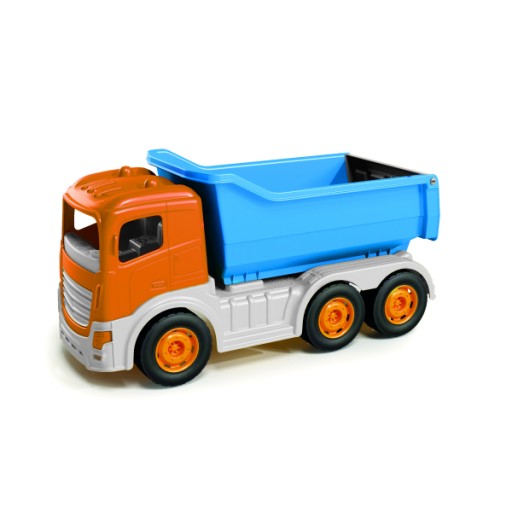 Pojazd został wyposażony w duże plastikowe koła połączone metalową osią, która sprawia, że cała konstrukcja maszyny jest bardzo wytrzymała. Wywrotka posłuży dziecku do przewożenia materiałów sypkich oraz kawałkowych. Można nią transportować wszystko co załaduje spychacz – kamienie, gruz czy piach. Wywrotka posiada przechylną skrzynię ładunkową z otwieraną tylną klapą dzięki czemu z łatwością wyładujemy zawartość naczepy. Zabawka wykonana w 100% z nadającego się do recyklingu, nietoksycznego, odpornego na słońce i wodę tworzywa sztucznego.
