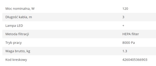 Filtr hepa zatrzymuje zarówno średnie, jak i najmniejsze cząsteczki śmieci oraz niezawodnie chroni silnik przed dostaniem się drobnego pyłu. Filtr jest wyjmowany i w razie potrzeby wystarczy przepłukać go bieżącą wodą, aby móc używać ponownie.