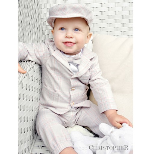 WIZYTOWY KOMPLET CHŁOPCIĘCY CHRISTOPHER BEŻOWY W KRATĘ roz 80