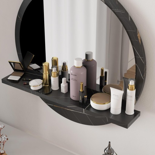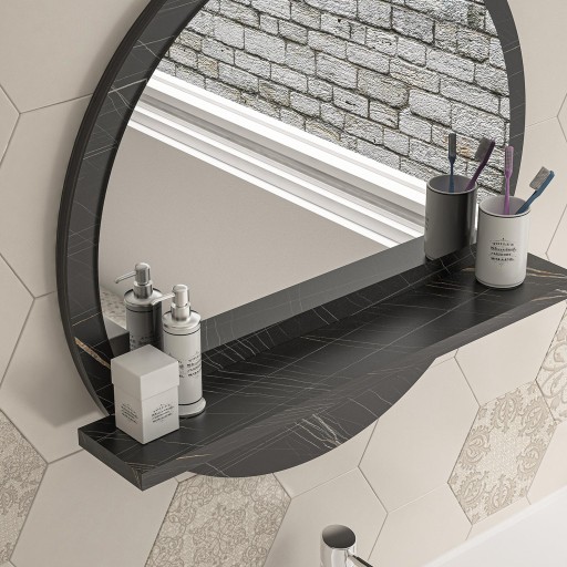 Настенное зеркало из черного мрамора с полкой 45 СМ.