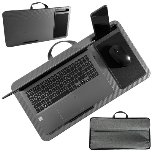 Nasz stolik pod laptopa to niezbędny gadżet zarówno w domu, jak i w podróży. Dostarcza nie tylko wyjątkowej funkcjonalności, ale także solidnej konstrukcji stylizowanej na włókno węglowe.
