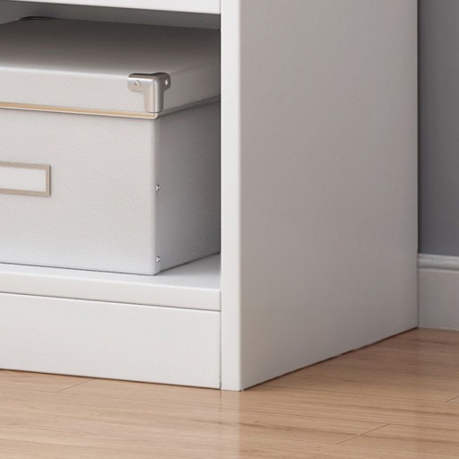 Biały kolor regału jest uniwersalny i pasuje do różnych stylów wnętrz. To sprawia, że jest to doskonały wybór do salonu, sypialni, biura, kuchni czy nawet łazienki.