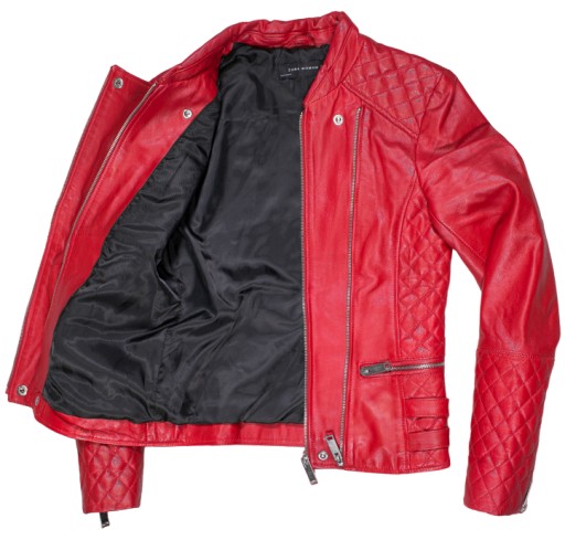 ЖЕНСКИЕ КОЖАНЫЕ РАДИАТОРЫ ZARA КРАСНЫЕ, НАТУРАЛЬНАЯ СТЕГАНАЯ КОЖА, РАЗМЕР 34