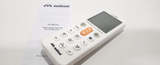 Meliconi AC 200 - uniwersalny pilot do klimatyzatorów, kompatybilny z większością marek, podświetlanym wyświetlaczem i funkcją palnika. Biały. 802102