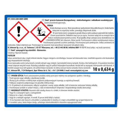 Raid Elektrofumigator przeciw komarom + 10 wkładów