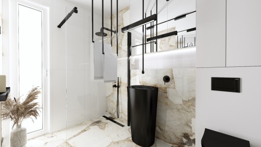 6 Rzutów wybranego pomieszczenia (łazienka lub kuchnia )wraz z Wizualizacjami: Nasz projekt obejmuje 6 różnych perspektyw pomieszczenia, abyś mógł dokładnie zobaczyć, jak będzie wyglądać Twoja przyszła łazienka i kuchnia.