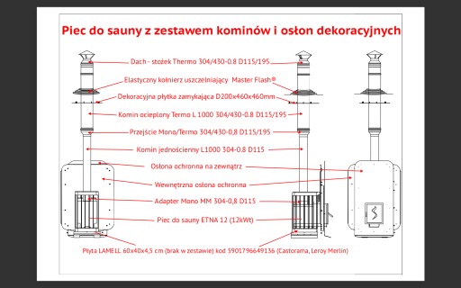 - płyta cementowa pod Piec 60x40 cm (jest zbyt ciężka do transportu kurierem, można ją kupić w sklepie budowlanym za 18 zł).