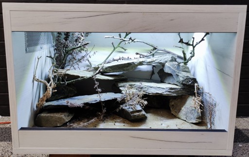 Terraria wykonywane są z dobrej jakości płyty meblowej, wytrzymałego szkła, oraz akcentami z aluminium - siatki, wywietrzniki etc. Jest to idealny wybieg do hodowli gadów, płazów oraz ssaków.