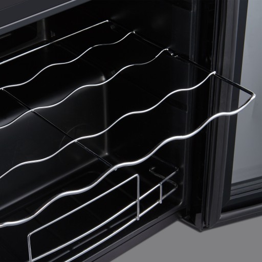 Miejsce na 18 butelek: Dzięki pojemności 50 litrów na 6 metalowych półkach można przechowywać do 18 wybranych butelek. Pochyła półka na dnie lodówki jest idealna do specjalnej prezentacji Twojej kolekcji.