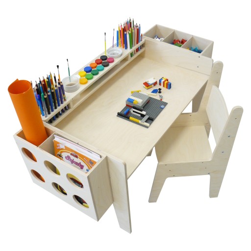 Stolik z krzesełkiem z regulowaną wysokością wraz z organizerami.