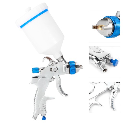 1. Korpus ze stopu aluminium z chromowaną powłoką ułatwiającą czyszczenie i trwałość, praktyczny w użyciu. 2. Wysokiej jakości igły i dysze ze stali nierdzewnej, kompatybilne z farbami na bazie wody. 3. Miedziany zawór przełączający zapewniający dobre uszczelnienie powietrzne. Filtr siatkowy usuwa cząsteczki brudu z lakieru, zapobiegając defektom. 4. Kubek z PCV umożliwia sprawdzenie poziomu płynu i jest łatwy w czyszczeniu, co zapewnia dużą wygodę. 5. Oszczędza farbę i zapewnia optymalną wydajność. Specjalny stożkowy kształt głowicy zapobiega rozpryskiwaniu się farby. 6. Lekka, ergonomiczna konstrukcja i łatwy obrót spustu zmniejszają zmęczenie podczas obsługi.