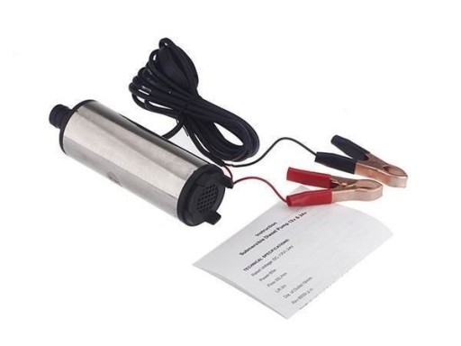 Pompka zasilana jest napięciem stałym 12V. Kabel zasilający posiada włącznik ON/OFF oraz jest zakończony klemami. Pompa posiada również filtr, który zapobiega przepompowywaniu zanieczyszczeń.