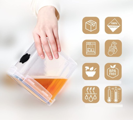 ✅ Ergonomiczny design: Profesjonalnie zaprojektowane pojemniki, które oszczędzają miejsce, można łatwo umieścić je w szafkach, lodówkach i innych miejscach.