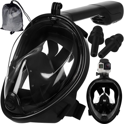 - UCHWYT DO KAMER SPORTOWYCH – pełno twarzowa maska do nurkowania wyposażona została w specjalny uchwyt do kamer sportowych, dzięki czemu możesz uwiecznić każde wejście do wody! Rurka do oddychania znajdująca się w zestawie jest składana. Sprawia, to że zestaw zajmuje niewiele miejsca. Przymocowanie fajki do maski jest niezwykle proste i zajmuje zaledwie kilka sekund.
