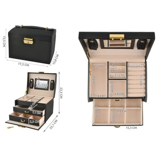 - POJEMNY – dzięki 20 różnym przegródkom i wgłębieniom, kuferek pomoże perfekcyjnie zapanować nad porządkiem w kolekcji biżuterii.