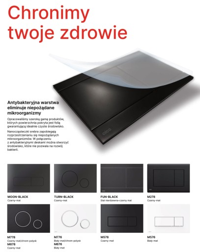 - Wykończenie: stal nierdzewna-czarny mat o właściwościach antybakteryjnych (zastosowano związki srebra)
