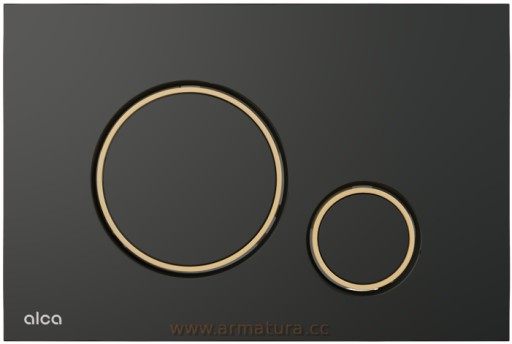 Кнопка для унитаза ALCA M778-5, ЧЕРНЫЙ МАТОВЫЙ, рамка ЗОЛОТАЯ