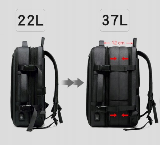 Gdy zajdzie taka potrzeba, plecak można łatwo powiększyć o dodatkowe kilka centymetrów. Wystarczy rozpiąć zamek, który znajduję się na całym obwodzie torby. Dzięki temu, w kilka sekund, z plecaka o pojemności 22L, zmienisz go w plecak 37L.