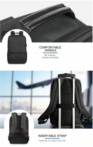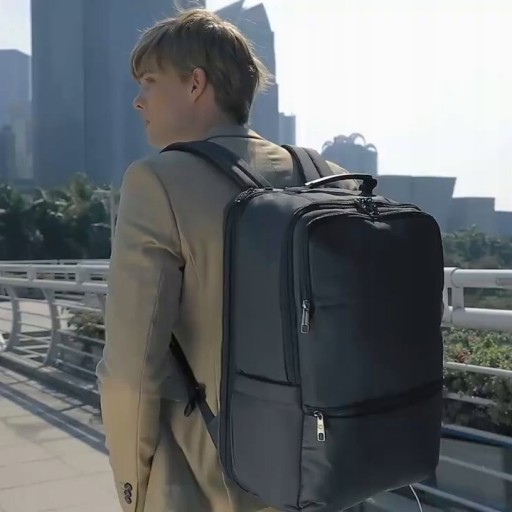 Bardzo duży, jednokomorowy plecak na laptopa marki Tigernu o symbolu T-B3905. Wykonany został z wytrzymałego i wodoodpornego materiału – nylonu, w kolorze grafitowym. Główna komora plecaka jest bardzo pojemna i można ją powiększyć o 6cm głębokości - wystarczy rozpiąć jeden suwak. Znajduje się tutaj kieszeń na laptopa w rozmiarze do 18", oraz kilka kieszonek, w tym jedna siatkowa zapinana na zamek. Plecak posiada pięć zewnętrznych kieszeni na podręczne rzeczy zapinane na zamek: dwie pojemne kieszenie znajdują się z przodu plecaka, jedna mała kieszeń znajduje się z boku plecaka, jedna płaska z tyłu plecaka (np. na foldery, teczki, dokumenty) oraz jedna pod uchwytem, która jest wyłożona miękkim, aksamitnym materiałem. Plecak posiada również schowaną na tylnej ściance specjalną kieszeń z systemem RFID, zabezpieczającą przed sczytaniem danych z karty kredytowej. Z boku plecaka znajduje się kieszonka z elastycznym paskiem przeznaczona na napój lub parasolkę. Szelki plecaka są solidne i wyprofilowane, aby plecak wygodnie się nosiło nawet przy dużym obciążeniu. Szelki posiadają dodatkowe, regulowane zapięcie na wysokości klatki piersiowej, aby równomiernie rozłożyć ciężar. Na jednej z szelek umieszczono również małą kieszonkę na kartę lub identyfikator. Tył plecaka wyłożono oddychającymi, grubymi gąbkami, aby lepiej chronić zawartość przed wstrząsami i uderzeniami. Na tylnej ścianie plecaka znajduje się również solidny nylonowy pas, dzięki któremu można założyć plecak na rączkę torby lotniczej. Plecak wyposażony jest w zewnętrzne gniazdo USB, dzięki czemu nie ma konieczności wyciągania powerbanka z plecaka, aby naładować telefon lub inne przenośne urządzenie. Na bocznej ściance umieszczony jest otwór na słuchawki. Od spodu plecaka umieszczono dodatkowe gumowe nóżki, aby stabilnie postawić plecak na podłożu. Plecak Tigernu T-B3905 polecamy osobom, które poszukują bardzo pojemnego i dobrze zorganizowanego plecaka na laptop.