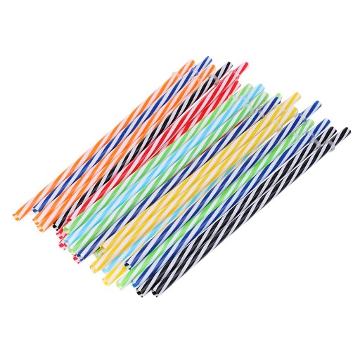 25 szt. Twardych słomek do picia wielokrotnego użytku w paski + dekoracje do czyszczenia