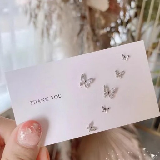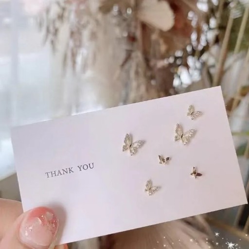 Набор корейских женских серег-гвоздиков с блестящими стразами и бабочками