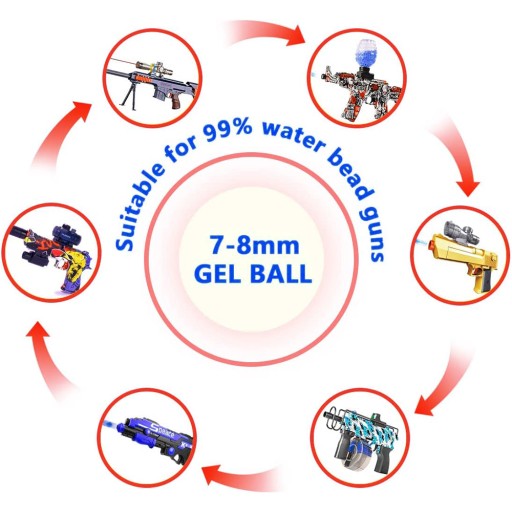 Jest to idealne narzędzie do stosowania w pistoletach. Po wypłynięciu w wodzie przez cztery godziny, działanie żelowych perłów będzie stale wypływać do 7-8 mm, co jest możliwe z użyciem miotaczami z piłką wodną. Gra szybka strzelania daje dzieciom lub dorosłym ekscytujące efekty. Nadaje się do bitew zespołowych i członków rodziny.